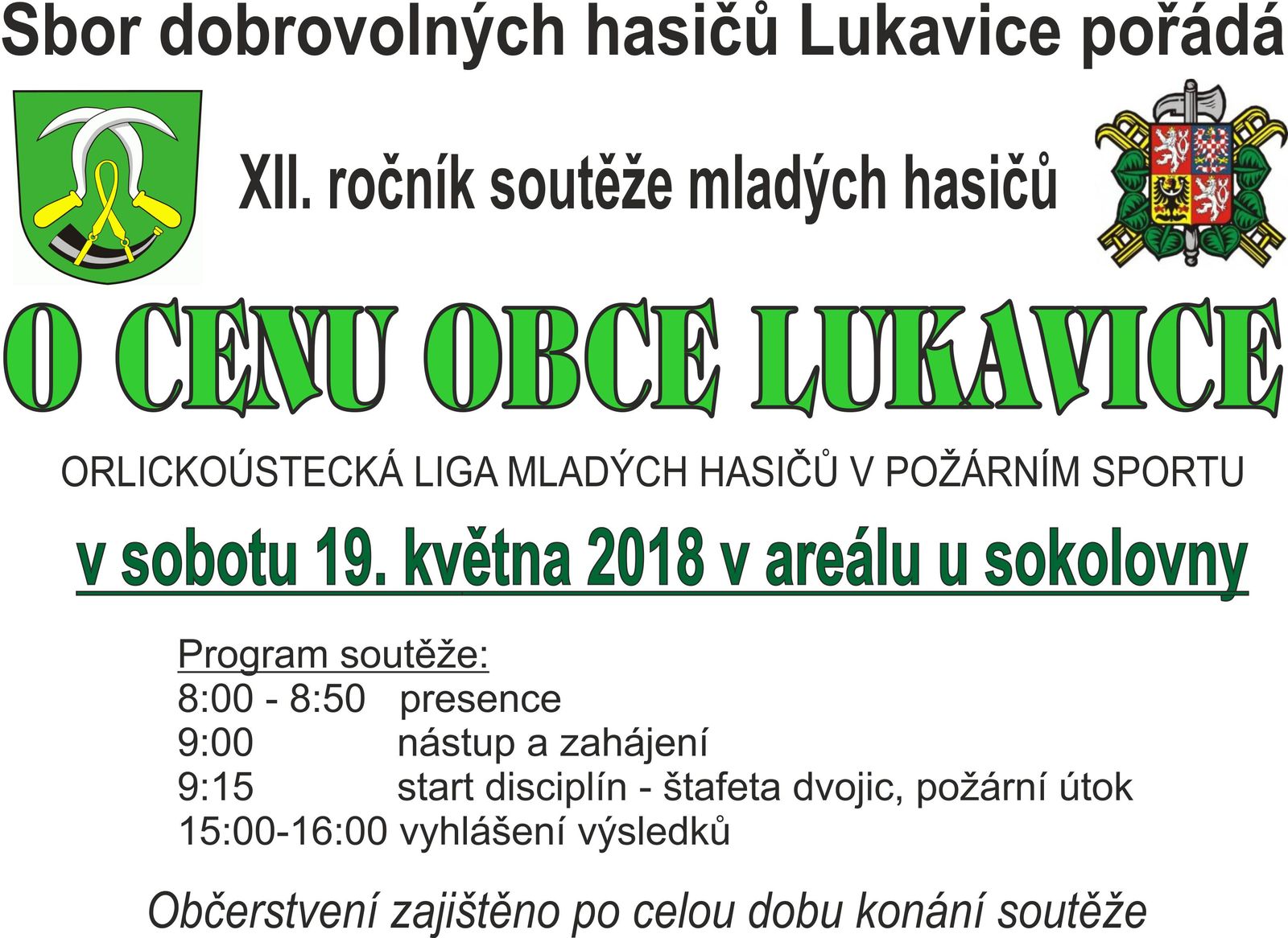 SDH Lukavice Vás zve na tradiční Oslavu svátku sv. Floriána, která se koná v pátek 4.května 2018. Akce bude zahájena v 18 hodin položením věnce k Pomníku padlých. Následovat bude volná zábava v hasičské zbrojnici. Občerstvení zajištěno - bude kýta.