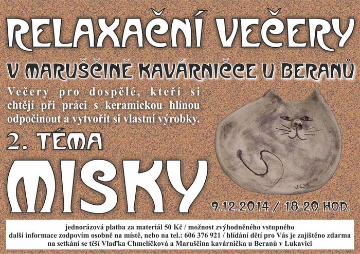 Obec Lukavice Vás zve ve středu 10. prosince na tradiční vánoční výstavu. Výstava bude otevřena od 8 do 19 hodin v zasedací síni obecního úřadu. Letos budou vystavovat - vánoční vazbu Svatava Mikysková, perníčky Jana Šverclová, patchwork Marie Dostálová a Radka Karvajová a vánoční přání (technika quilling) Dominika a Veronika Hoffmannovy. Vstupné je dobrovolné.
