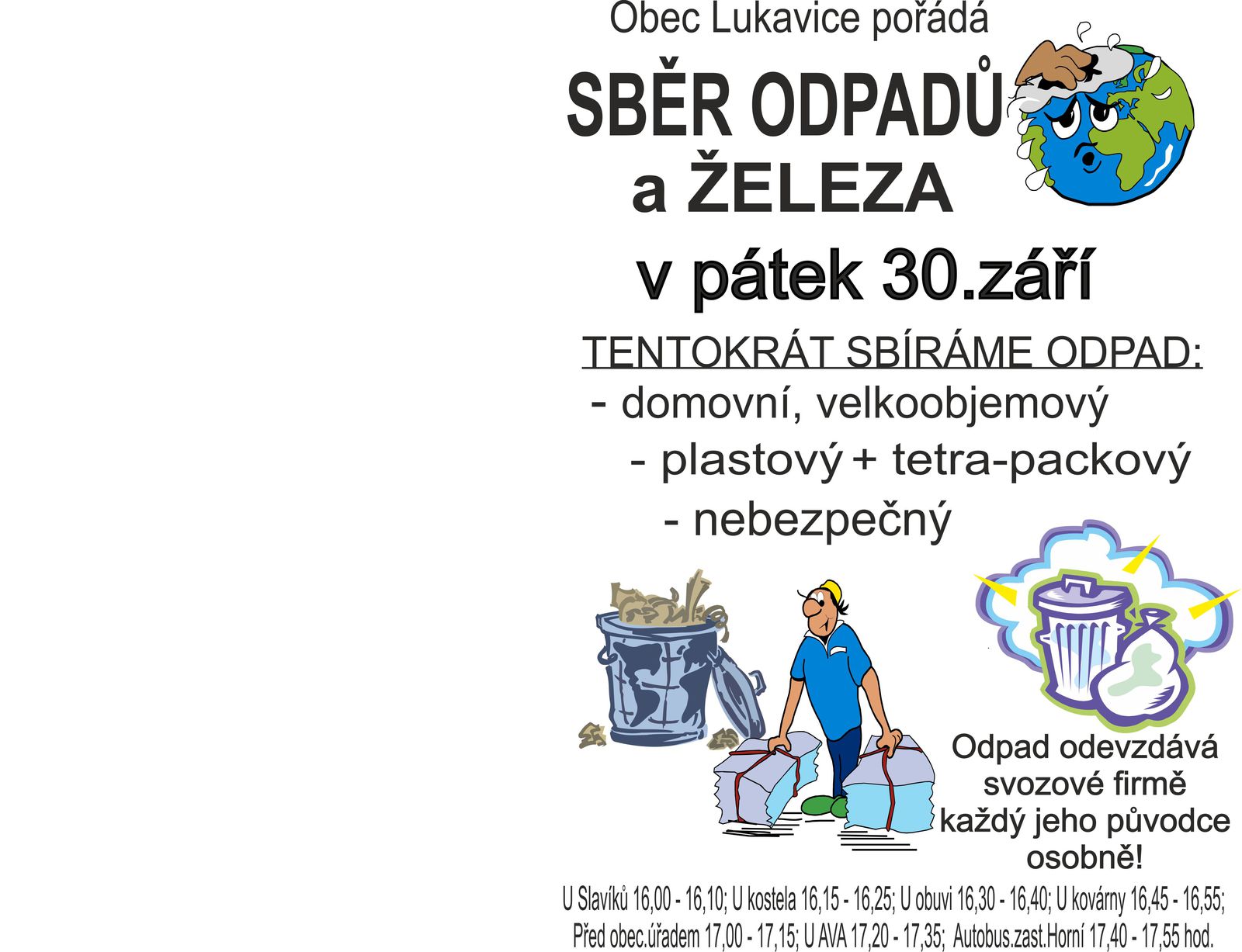 V pátek 30. září proběhne sběr odpadů a sběr železa. Začátek sběru je v 16 hodin a dále dle rozpisu na obvyklých stanovištích.sběr odpadu září 2016.jpg