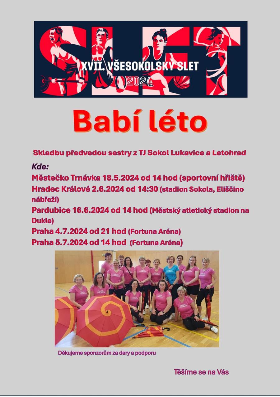 Skladbu BABÍ LÉTO předvedou sestry z T.J. Sokol Lukavice a Letohrad. Termíny naleznete níže.